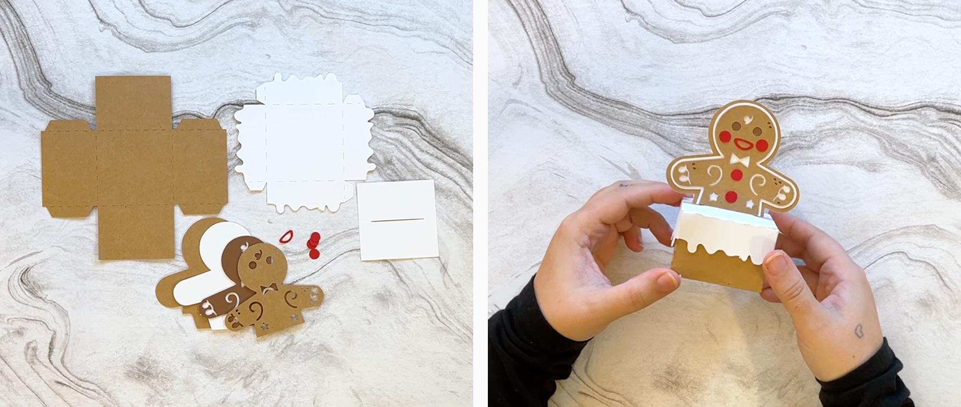 Locate the files named “Step-5_GingerbreadMan_SmallBox” and cut out each layer from your cardstock.
